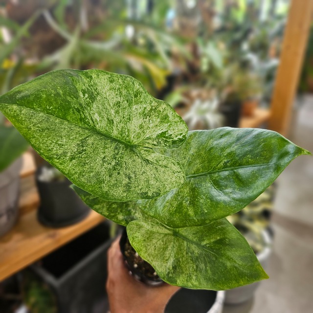 アロカシア・オドラ(通称クワズイモ)の斑入り品種で、 その名の通り、インドネシアの伝統的な染色技法「バティック」を思わせる、 繊細で芸術的な葉の模様が最大の特徴です。 濃い緑色の葉に、白やクリーム色の斑が不規則に散りばめられたような模様は、 一枚一枚が異なる個性的な美しさを持っています。 一般的なクワズイモよりも、葉の模様がより細かく複雑に入ることが多く、 観葉植物愛好家から高い人気を集めています。 ʚɞ┈┈┈┈┈┈┈ 注意事項 ┈┈┈┈┈┈┈ʚɞ ▪ 写真は現物ではありません。ご注文する前に実際の商品をご確認されたい方、お手数ですがメッセージにてご連絡いただきますようお願いいたします。 ▪ ポット苗(鉢のままを発送いたします。) ▪ 乾燥させてから発送になります。2~3日間程度かかります。あらかじめご了承ください。 ▪ 生きている植物は日々変化しますので出荷する時、写真とは異なることがあります。ご購入する際、あらかじめご了承ください。 ▪ 発送する際、丁寧に梱包いたしますが、葉や身の取れやすい種類もありますことご了承ください。 ▪ この商品は当店実店舗でも販売しております。在庫数の更新は随時行っておりますが、お買い上げいただいた商品が、品切れになってしまうこともございます。その場合、お客様には必ず連絡をいたしますが、万が一入荷予定がない場合は、キャンセルさせていただく場合もございますことをあらかじめご了承ください。 ▪ モニターの発色の具合によって実際の商品と色が異なって見える場合がございます。 ▪ 送料は地域により異なります。『送料・配送方法について』をご確認ください。