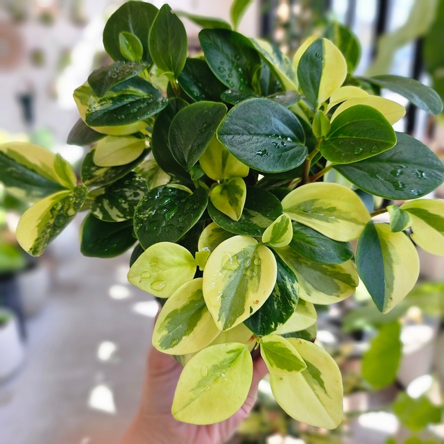 ペペロミア・グラベラ Peperomia glabella ペペロミア特有の少し厚みのある、ツヤツヤしたたまご型の葉が特徴です。 触ると少し弾力があり、多肉植物に近い性質を持っています。 一般的に流通しているのは、葉の縁にクリーム色やライム色の斑が入る「バリエガータ」というタイプが多いです。 お部屋を一気に明るくしてくれる色合いです。茎が柔らかく、横に広がったり下に垂れ下がったりして育ちます。時間が経つと鉢を覆い尽くすようにこんもりと茂ります。 ʚɞ┈┈┈┈┈┈┈ 注意事項 ┈┈┈┈┈┈┈ʚɞ ▪ 写真は現物ではありません。ご注文する前に実際の商品をご確認されたい方、お手数ですがメッセージにてご連絡いただきますようお願いいたします。 ▪ ポット苗(鉢のままを発送いたします。) ▪ 乾燥させてから発送になります。2~3日間程度かかります。あらかじめご了承ください。 ▪ 生きている植物は日々変化しますので出荷する時、写真とは異なることがあります。ご購入する際、あらかじめご了承ください。 ▪ 発送する際、丁寧に梱包いたしますが、葉や身の取れやすい種類もありますことご了承ください。 ▪ この商品は当店実店舗でも販売しております。在庫数の更新は随時行っておりますが、お買い上げいただいた商品が、品切れになってしまうこともございます。その場合、お客様には必ず連絡をいたしますが、万が一入荷予定がない場合は、キャンセルさせていただく場合もございますことをあらかじめご了承ください。 ▪ モニターの発色の具合によって実際の商品と色が異なって見える場合がございます。 ▪ 送料は地域により異なります。『送料・配送方法について』をご確認ください。