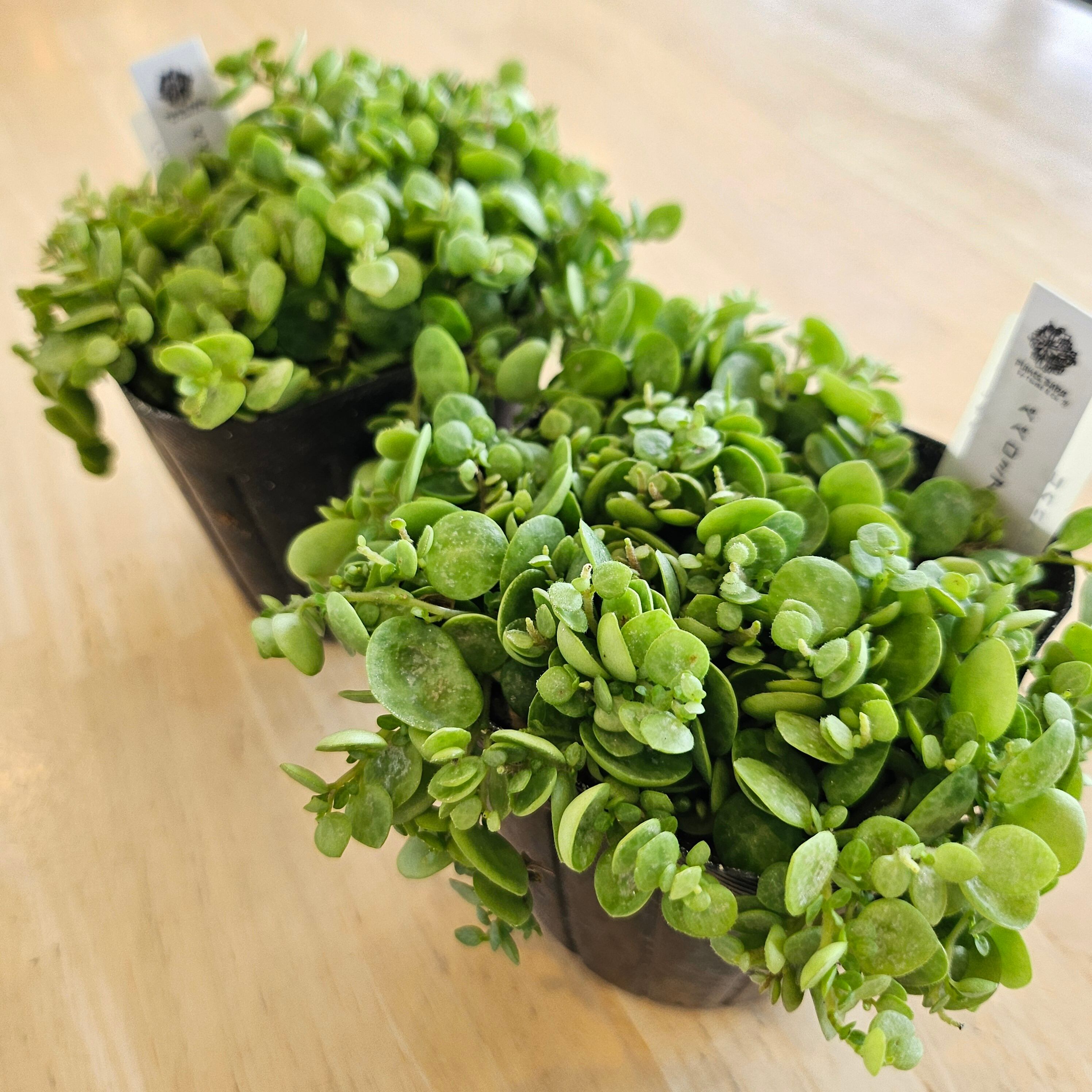 丸くて可愛らしい葉を持つ植物ですが、こちらはより小さな葉が連なるように生えるのが特徴です。つる性で、垂れ下がるように伸びていくので、ハンギングプランターで楽しむのにぴったりです。