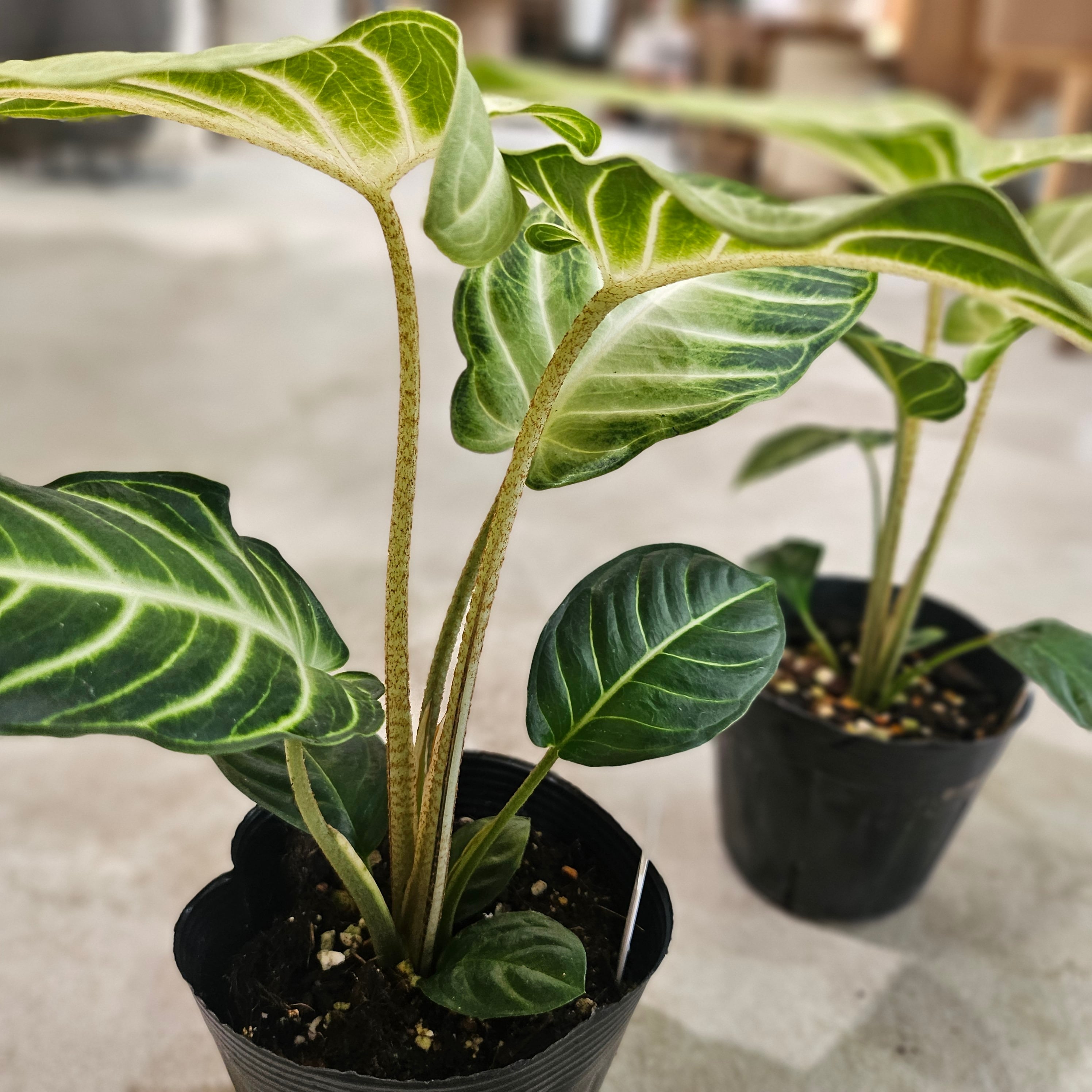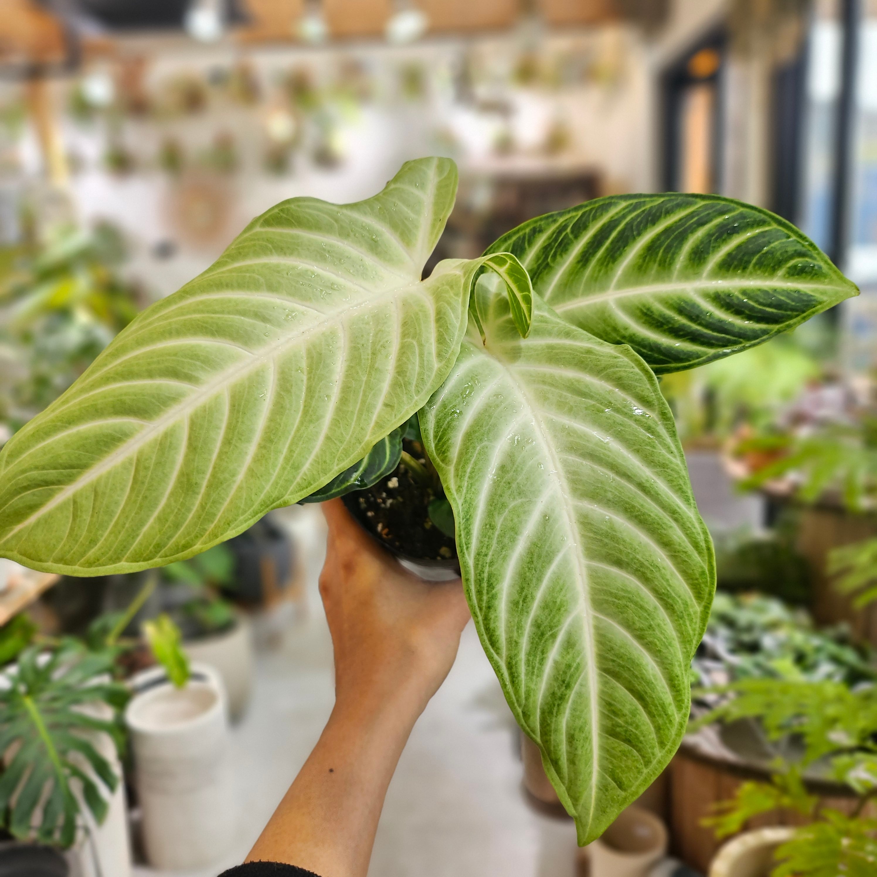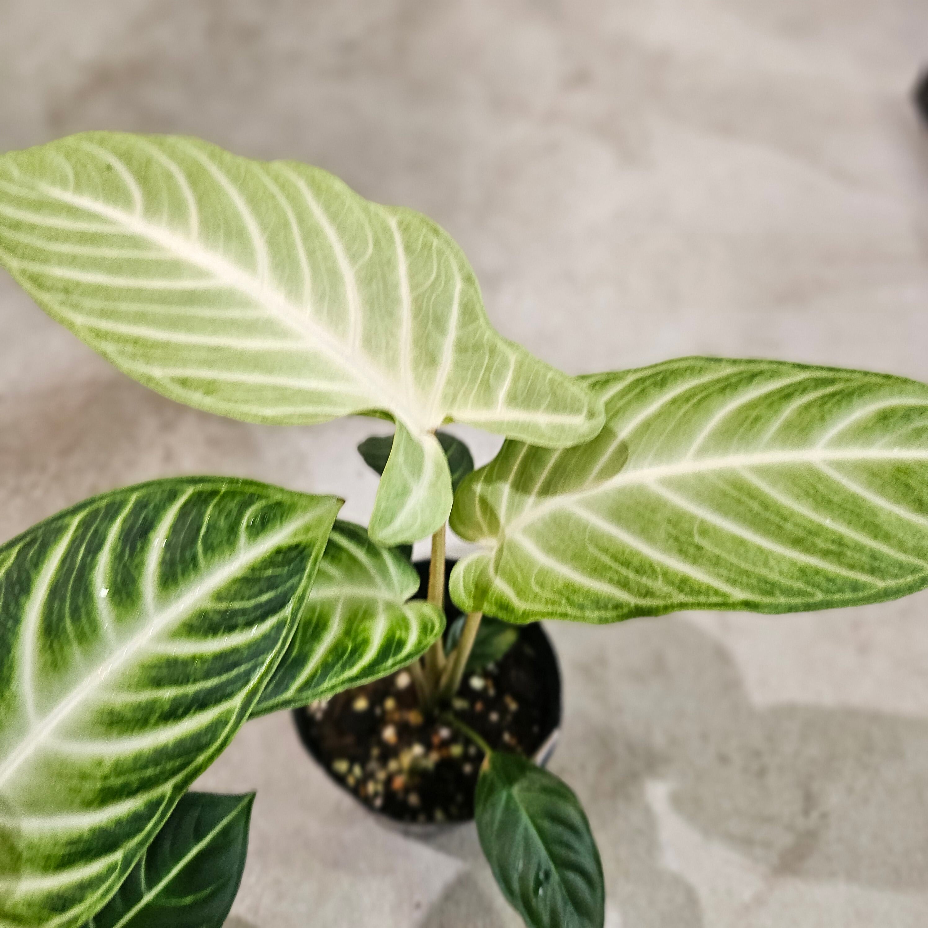 シュッとした大きな矢尻形(アローシェイプ)の葉が特徴的で、存在感があります。