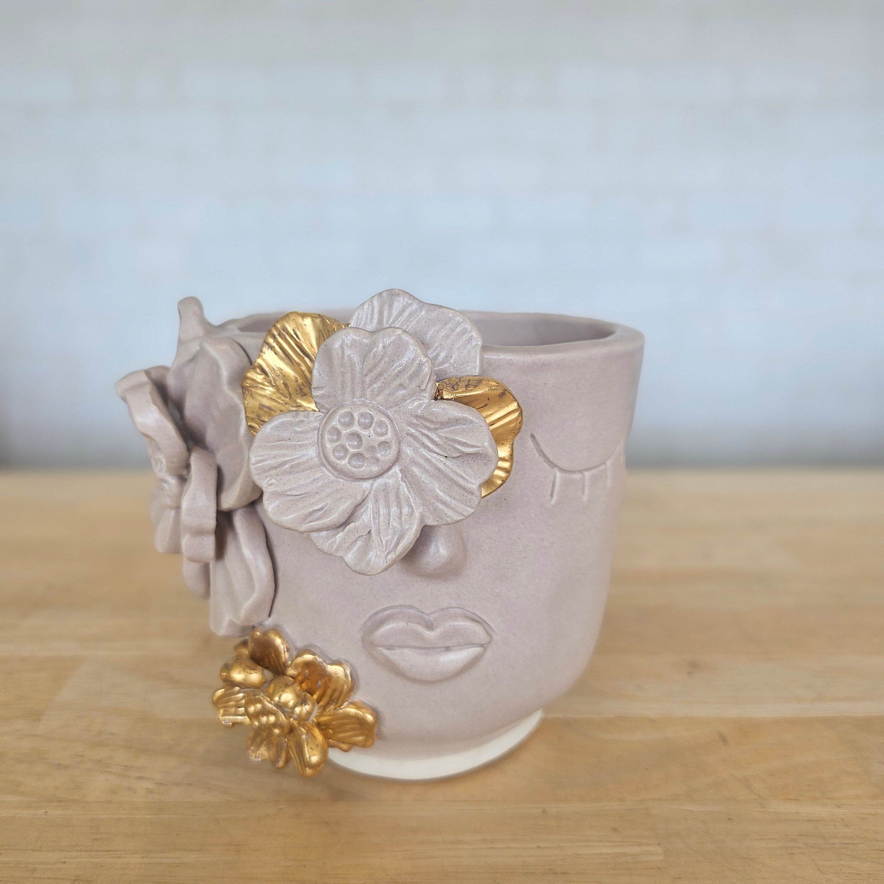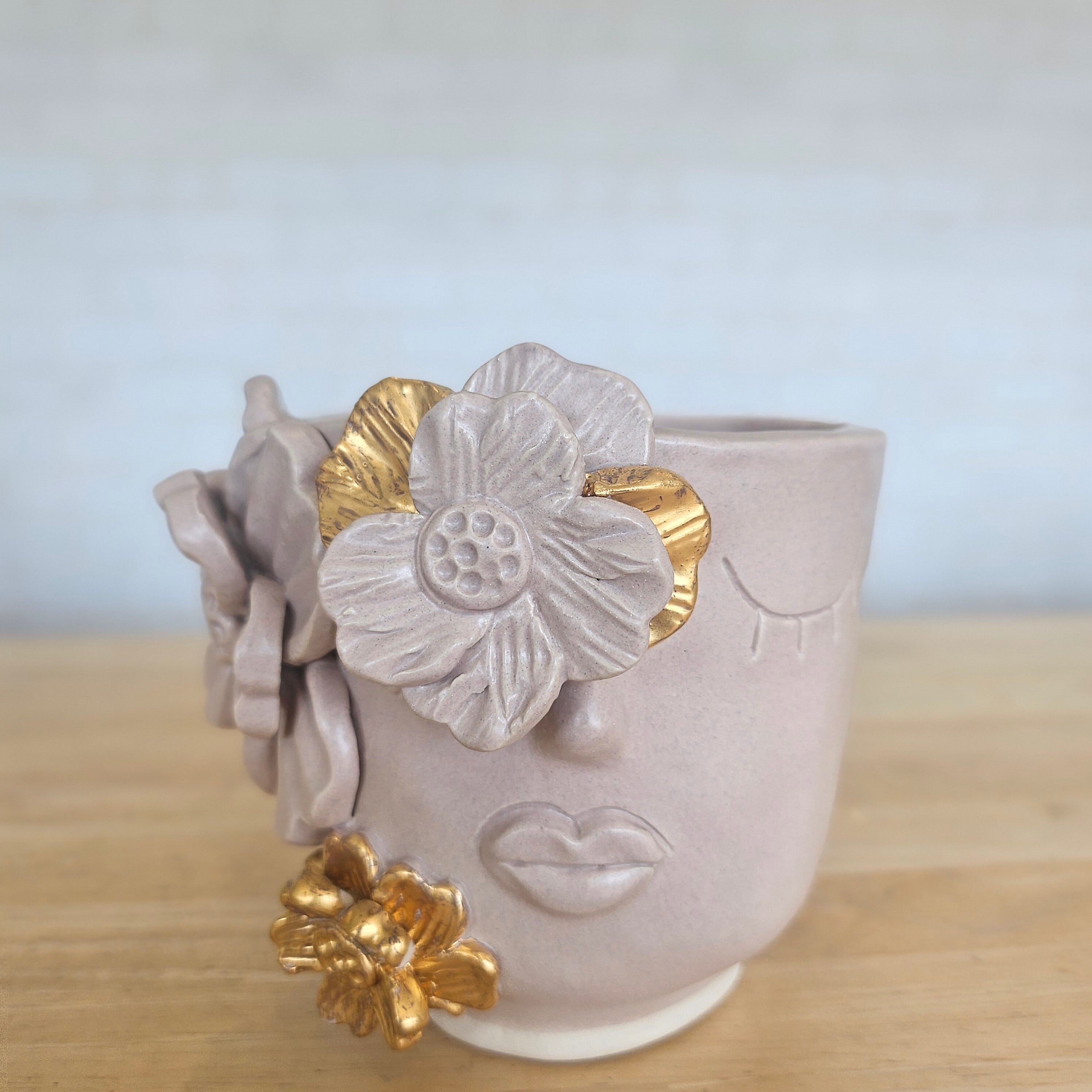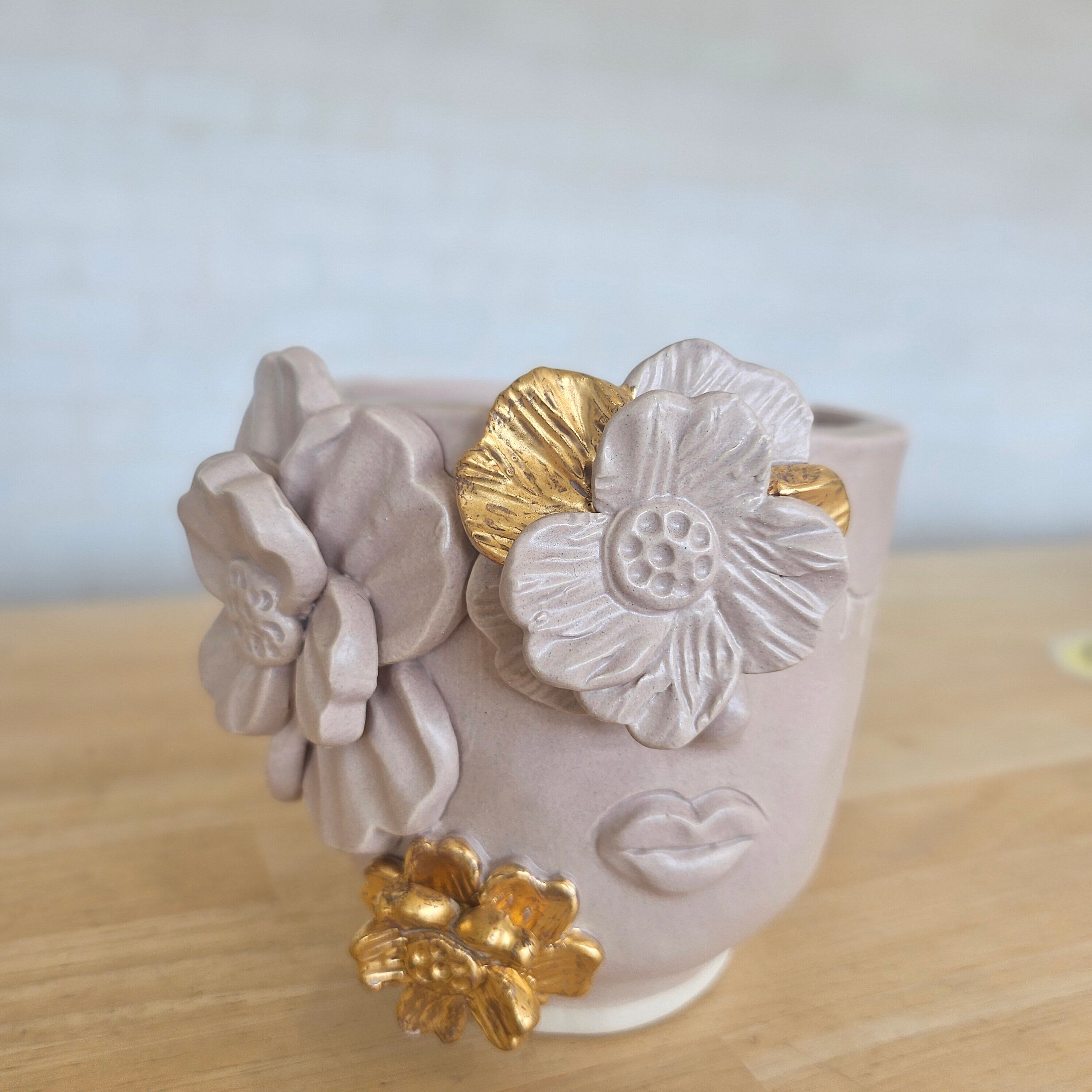【Gold01 ピンク】タイの陶器工房ハンドメイド植木鉢