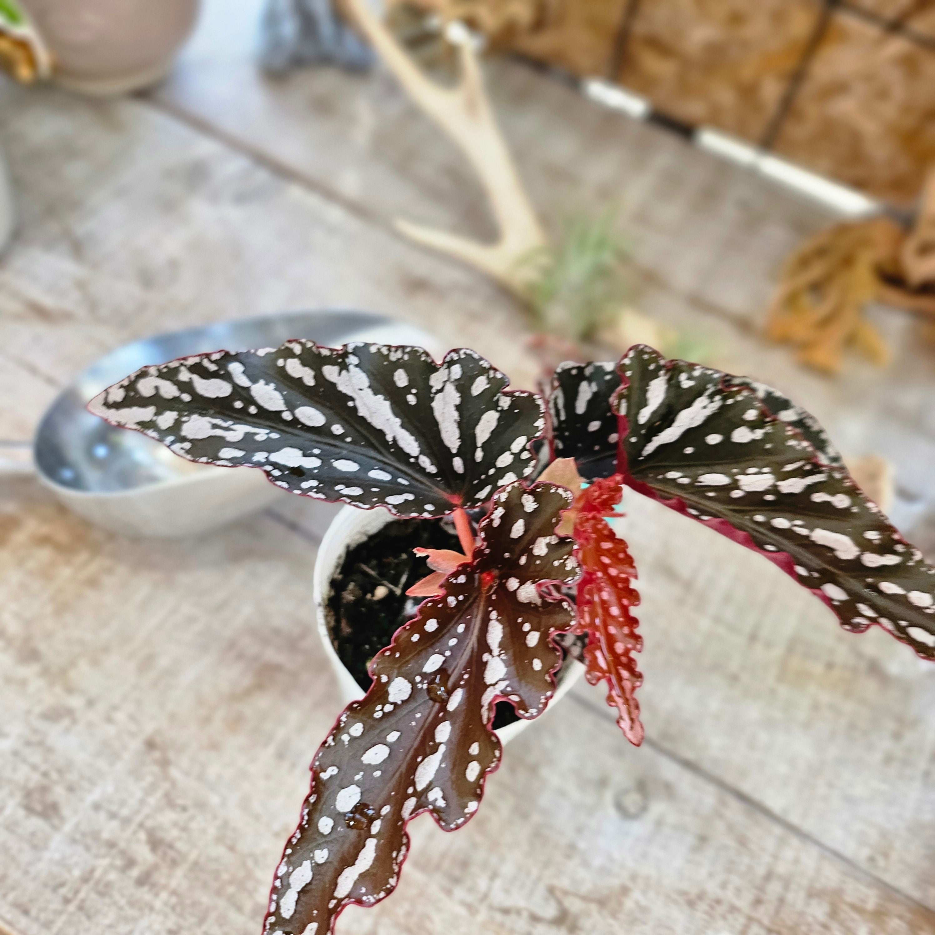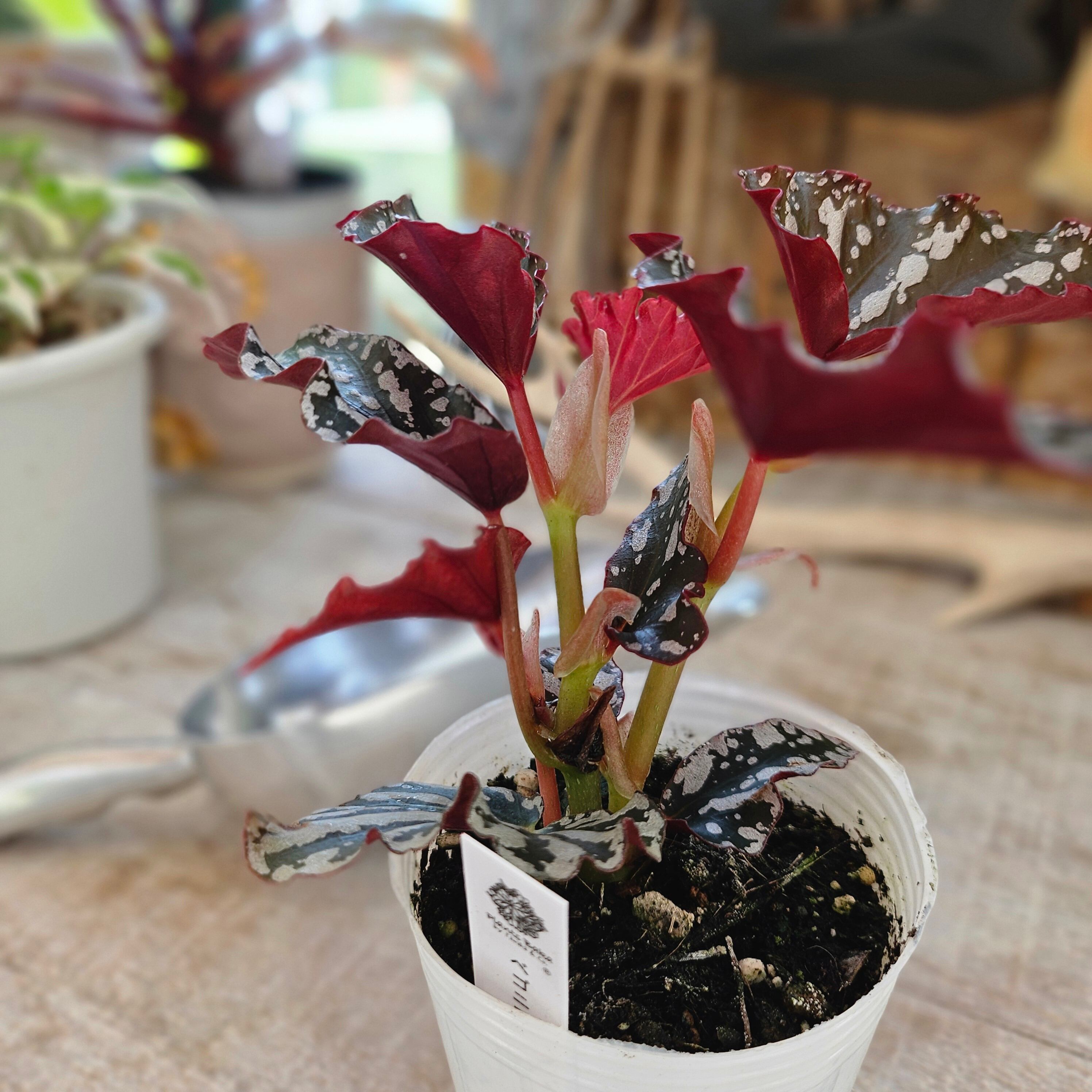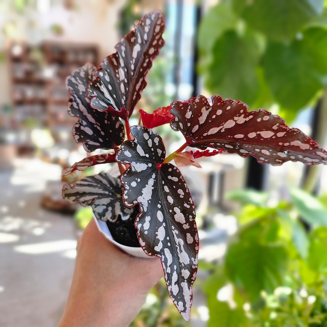 他の木立ち性ベゴニアに比べると、節間が詰まって育ちやすく、比較的コンパクトにまとまりやすい性質を持っています。そのため、棚の上やデスク周りなど、限られたスペースでも飾りやすいのが魅力です。