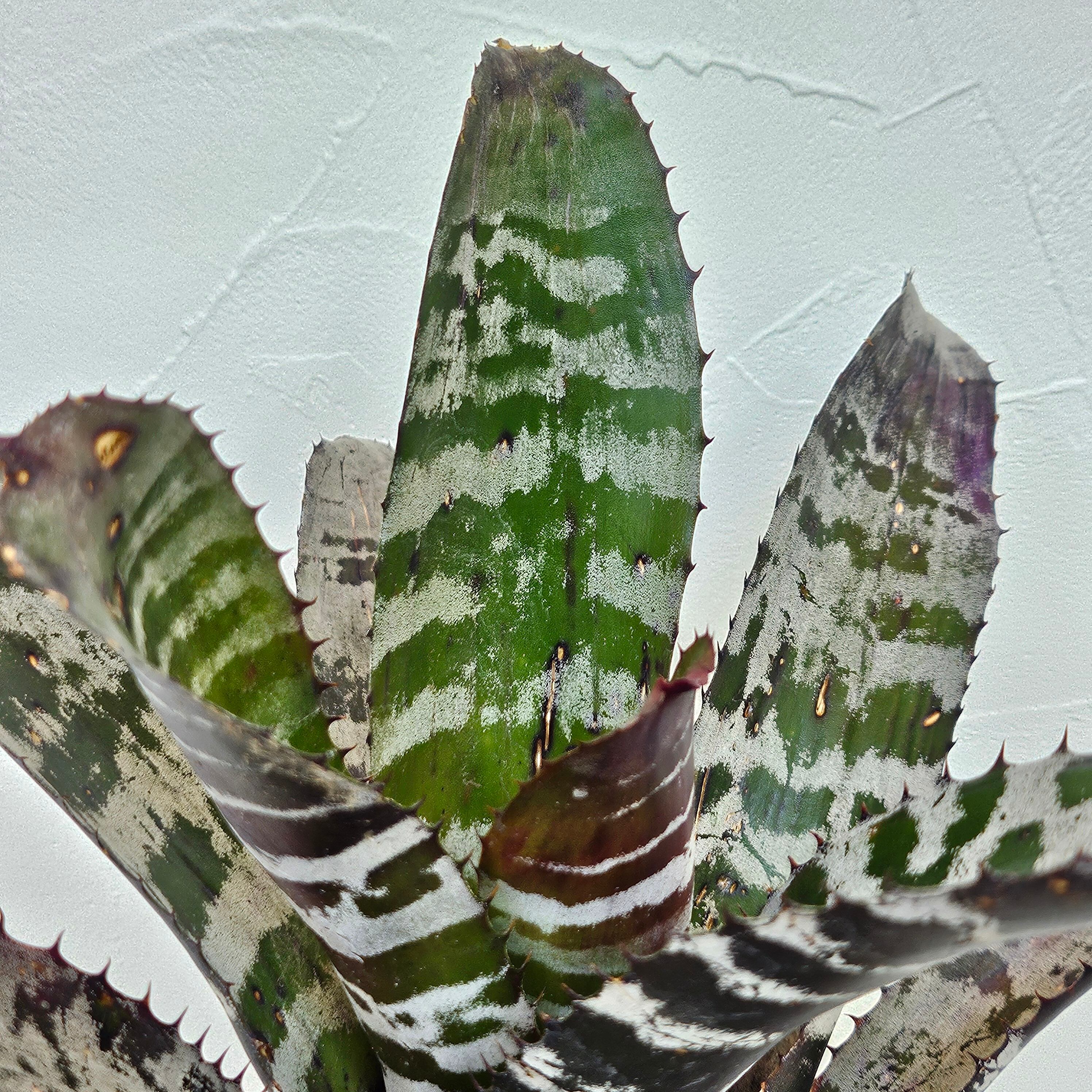 中南米を中心に約 300種が分布。タンクブロメリアの仲間で形のバリエーションが多いのが魅力。株はロゼット状で基部は筒状となり、葉の縁にとげがあることが特徴。