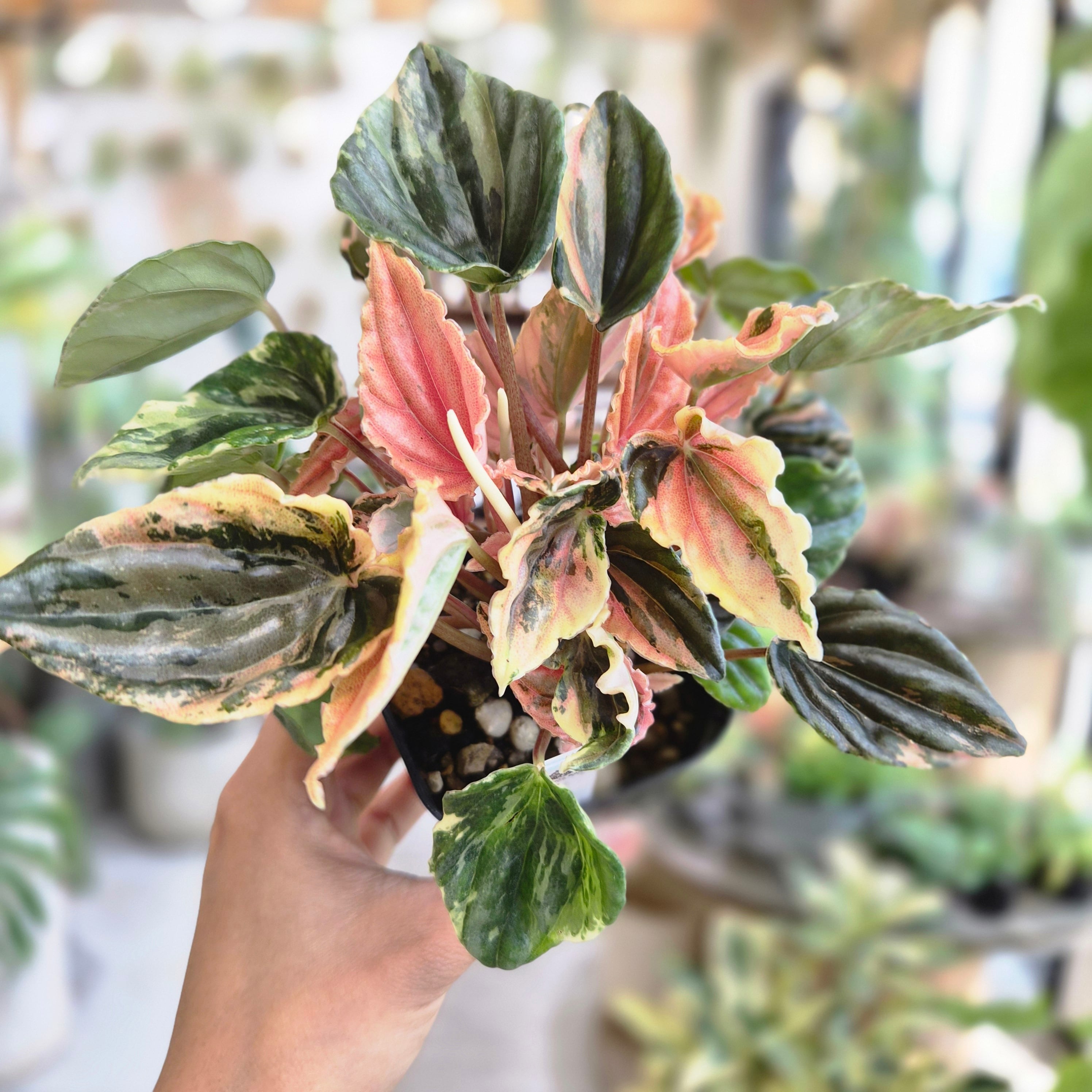 さまざまな種類がある緑色にクリームからピンクがかった美しい色合いのペペロミア。